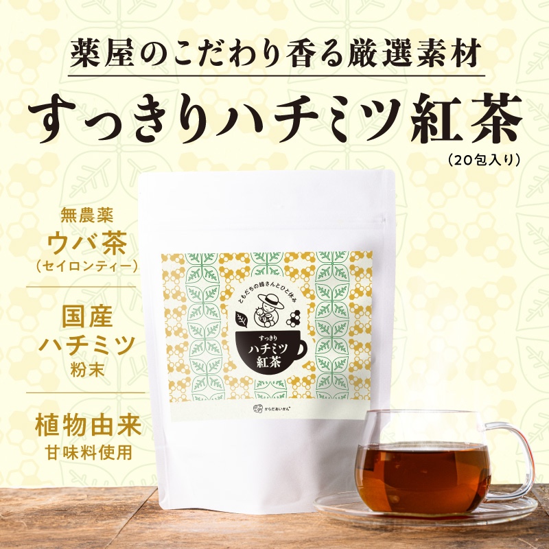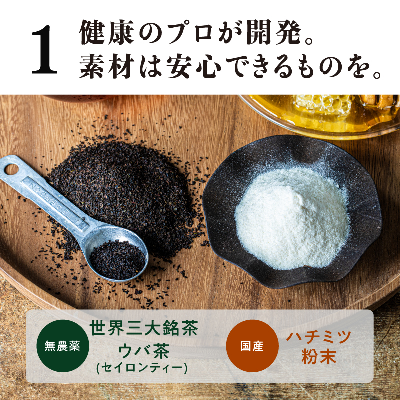 【全成分】紅茶(スリランカ)、ハチミツパウダー(国産)/甘味料(ステビア)、香料