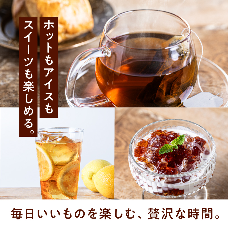 温めたカップにティーバック1包をいれ、100℃程度のお湯160mlを注ぎ、2~3分程度蒸らしてお召し上がりください。※蒸らし時間が短すぎると風味が薄くなり、長すぎると苦味や渋みがでることがあります。