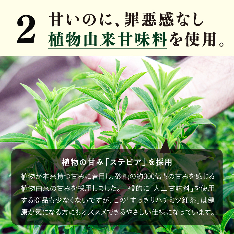 人工甘味料不使用 国産ハチミツパウダーを使用したハチミツ紅茶です。